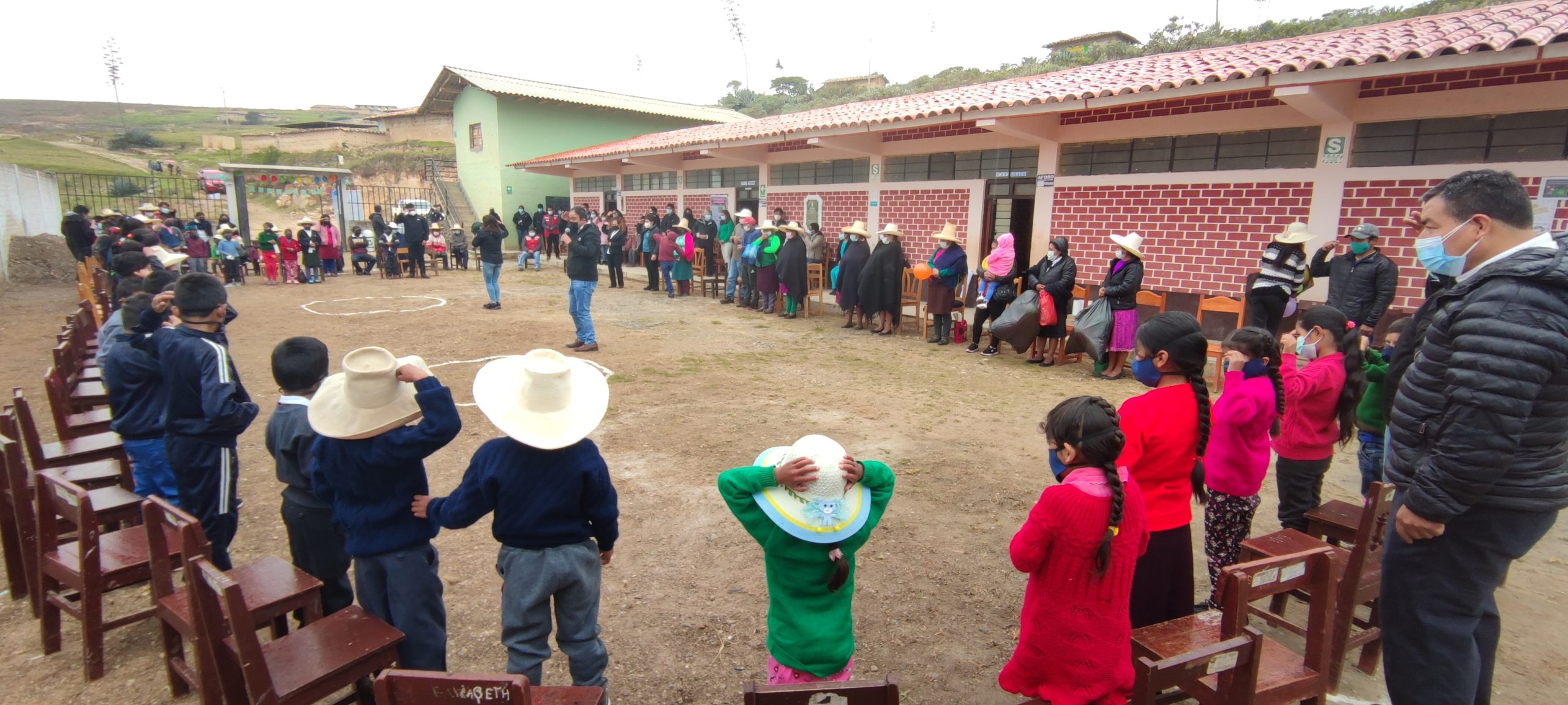 En la recepción de niños y niñas de la comunidad de Mezapata a su primer día de clases, se contó también con la participación de diferentes autoridades regionales, provinciales y distritales, así como la directora de la IE, docentes y familias.