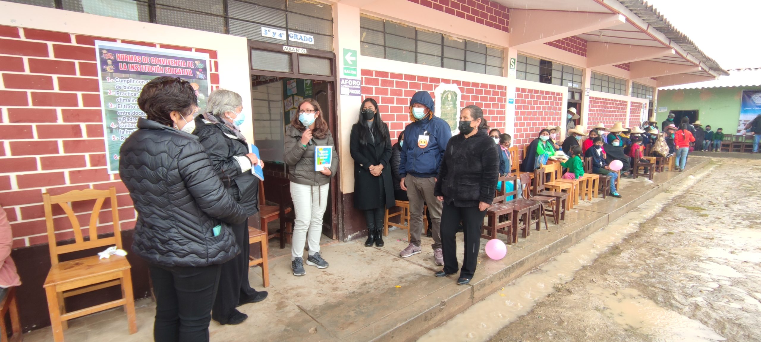 Nuestras coordinadoras Patricia Arregui y Liliana Miranda, junto a Sheila Avila, técnica Regional de Programas para América del Sur de Old Dart Foundation, participaron en la apertura del año escolar 2022 en la IE N° 82359- Mezapata, distrito de Cachachi, provincia de Cajabamba, región Cajamarca.