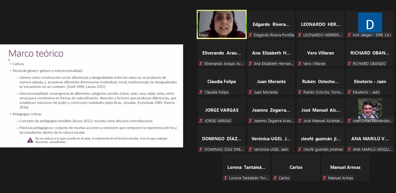 María José Sánchez, presentó a más de 20 especialistas y autoridades de la Dirección Regional de Educación de Cajamarca, los hallazgos y recomendaciones de su estudio «Las pedagogías invisibles de género en escuelas multigrado rurales: Análisis de prácticas pedagógicas», elaborado junto a Themis Castellanos para el proyecto CREER.
