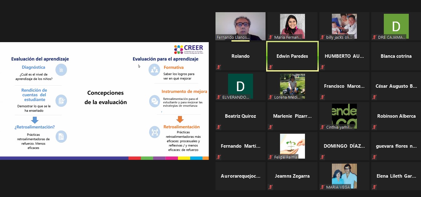Fernando Llanos presentó a más de 100 integrantes de la Dirección Regional de Educación de Cajamarca, el estudio acerca de concepciones y prácticas docentes sobre la evaluación formativa, desarrollado por encargo del proyecto CREER, implementado por Grade con asistencia técnica y financiera de Old Dart Foundation.