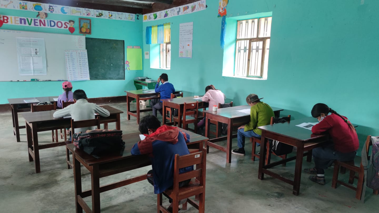 El equipo del proyecto CREER viene recorriendo las escuelas rurales multigrado del distrito de Cachachi, provincia de Cajabamba, región Cajamarca, para aplicar pruebas diagnósticas a los estudiantes, con la finalidad de indagar el nivel de aprendizajes en los que se encuentran los escolares y organizar intervenciones para el refuerzo de aprendizaje con las acompañantes pedagógicas del proyecto.