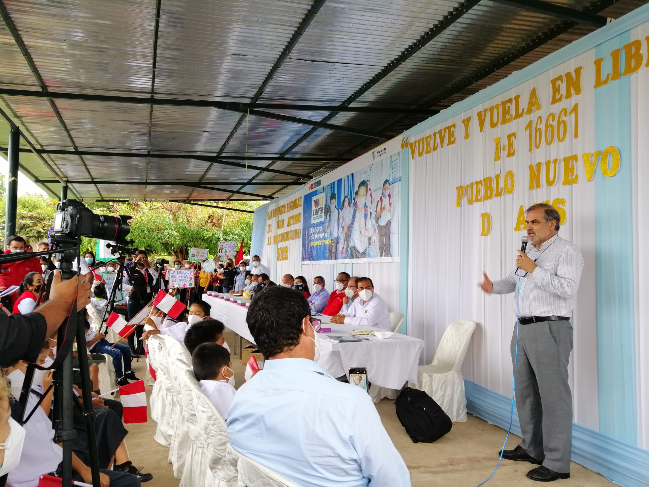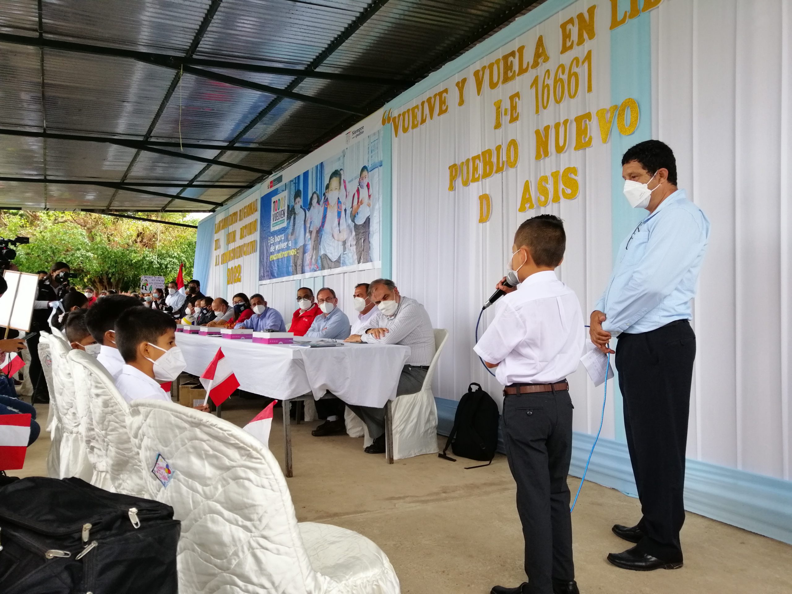 Nuestro coordinador general, Santiago Cueto, participó en la apertura del Año Escolar 2022 en la IE multigrado N° 16661 en el caserío Pueblo Nuevo de Asís, distrito de Bellavista, provincia de Jaén, región Cajamarca. En esta ceremonia regional de lanzamiento del buen retorno a las aulas donde se recibió con gran emoción a las y los estudiantes así como a sus docentes, participaron también: el gobernador Regional, Mesías Guevara Amasifuén; el director Regional de Educación, José Presvítero Alarcón Zamora; el viceministro del Interior, Pedro Vilca Sánchez; la directora de DIBRED del Minedu, María del Carmen Alfaro Villalobos; el director de la UGEL Jaén, Jorge Fernández Mera; el alcalde del distrito de Bellavista, Willy Gunther Coronado Cisneros; el director de la IE Nº 16661, Oscar Mendoza Adan; y el coordinador Territorial de la Región Cajamarca del Minedu, Willy Torres Vitor; entre otras autoridades e invitados de programas sociales, instituciones provinciales, regionales y locales, especialistas de la UGEL y familias.
